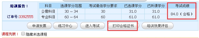 学员考试合格后,即可打印合格证,点“打印合格证”按钮即可。